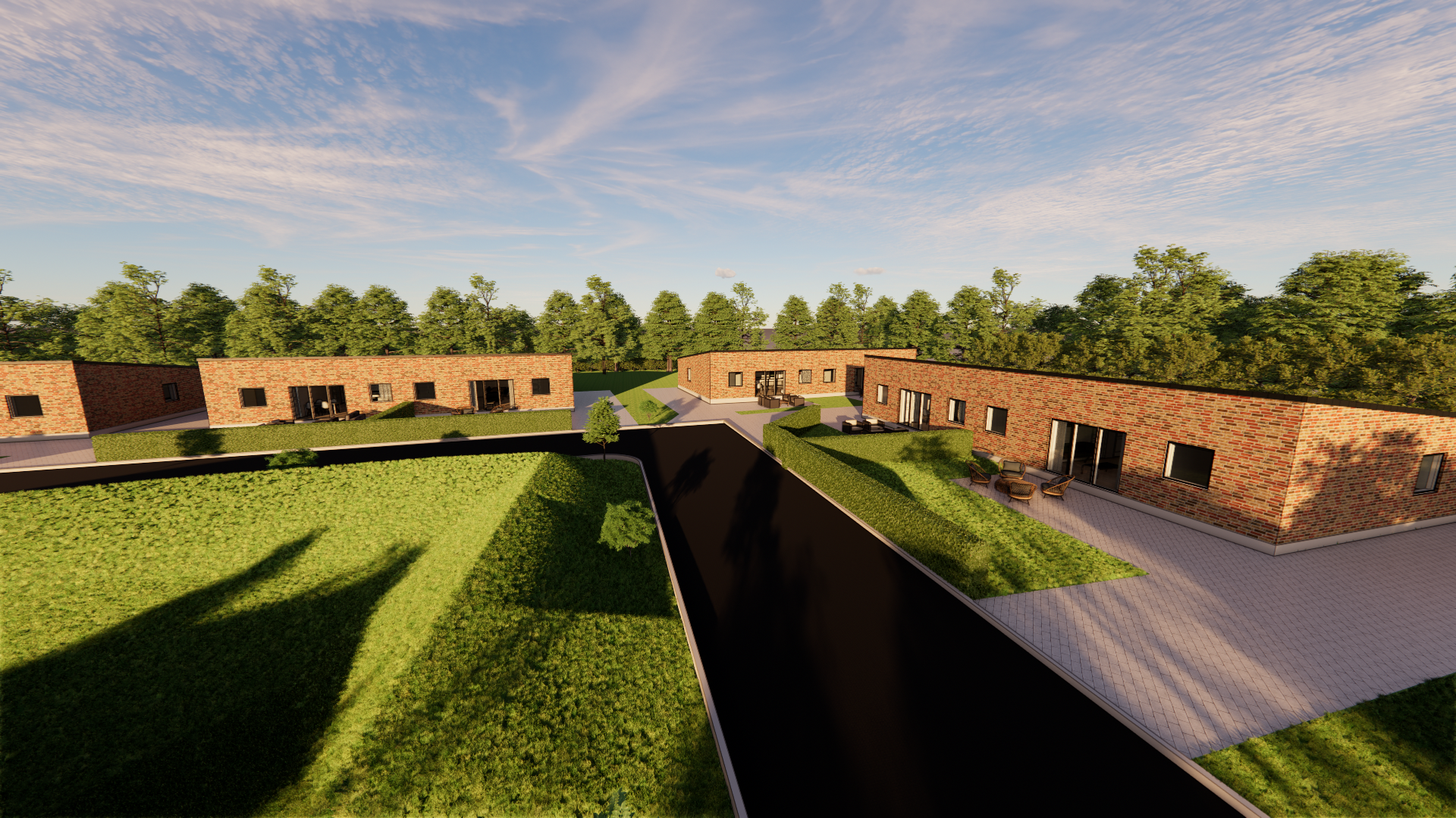 Vi har i samarbejde med lokale aktører i Arnborg, som har i sinde at skabe nyt liv i byen, udarbejdet skitser samt 3D tegninger på 6 dobbelthuse til udlejning. Dobbelthusene placeres i et flot område, som skabes i forbindelse med planerne.